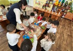 "Көңілді қыс" Міндеті: Балаларға қатар қойылған 2 арқаннан аттап секіруге үйрету. Дыбыстардың, сөздер мен сөз тіркестерінің анық айтылуына назар аудару. Мнемокесте арқылы өлең шумақтарын айту. Табиғаттғы өзгерістер туралы балалардың түсініктерін қалыптастыру. Қардан тәжірибе жасау. Ойын жаттығулары арқылы,түстері мен пішіндерді атау. Гупканы үш саусақпен қатты қыспай ұстауға үйрету. Фланеграфта геометриялық фигураларды орналасыру. Балалардың дәстүрден тысәдістер арқылы шығармашылық қабілеттерін арттыру. Өткізген: Кіші 2 "Қошақан"тобынын тәрбиешісі : Зулхарова Айжаркын Бакткалиевна