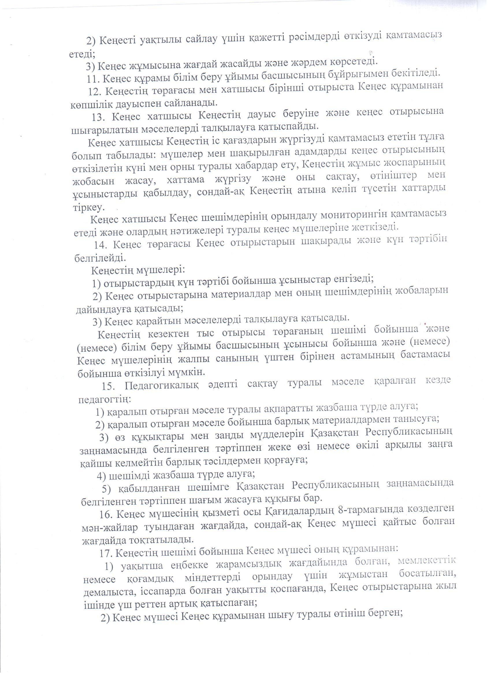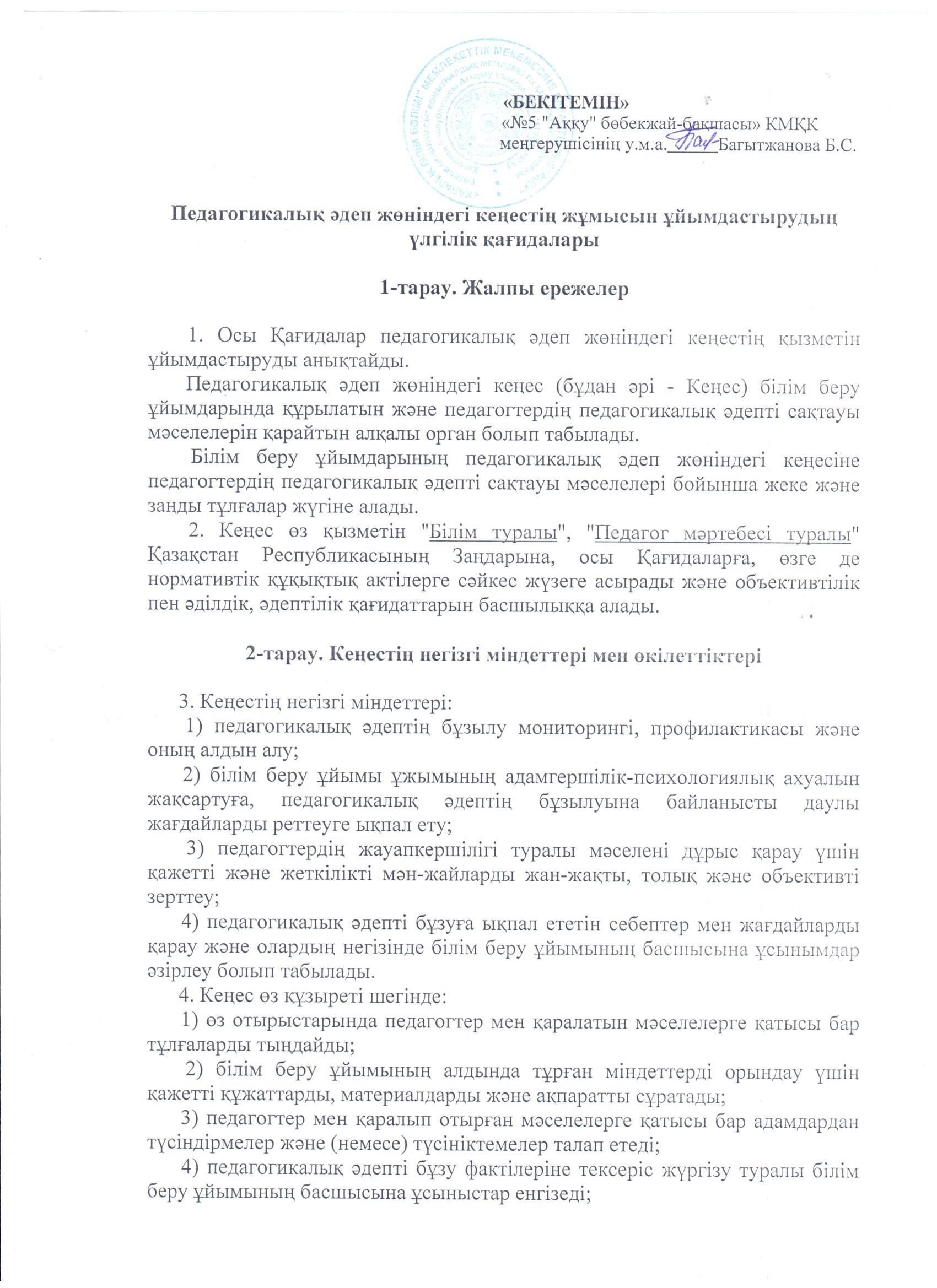 Педагогикалық әдеп жөніндегі кеңестің жұмысын ұйымдастырудың үлгілік қөағидалары