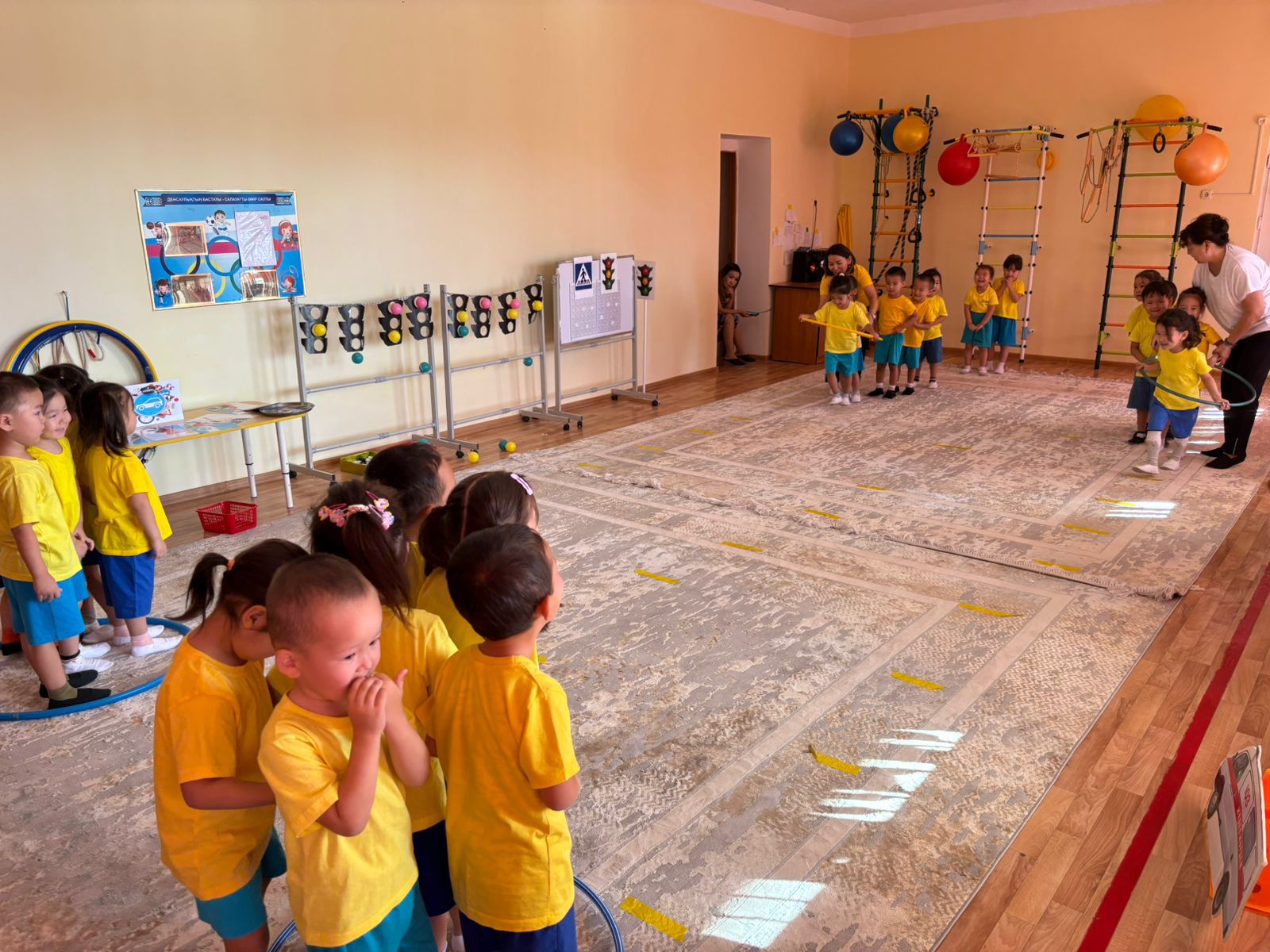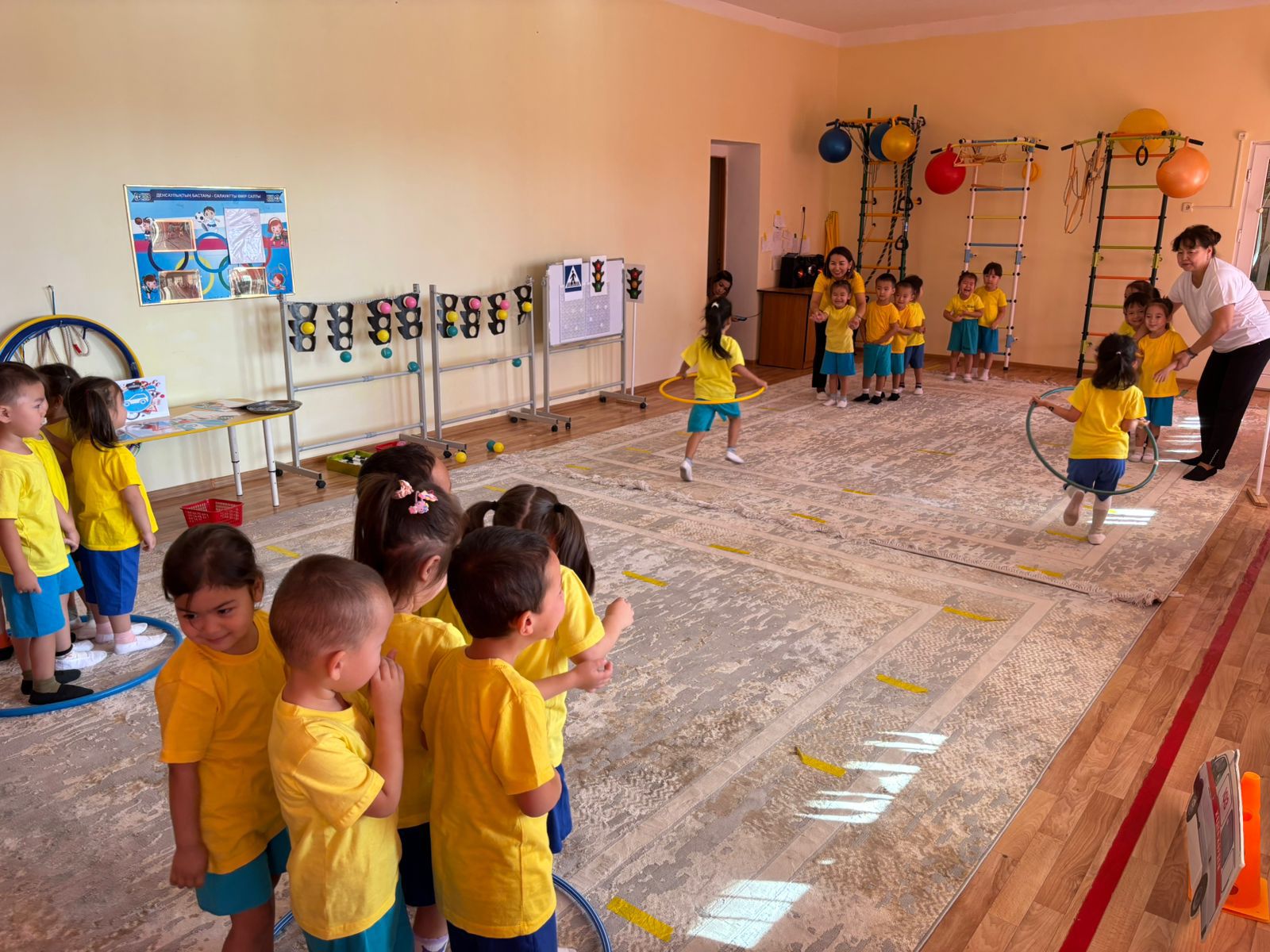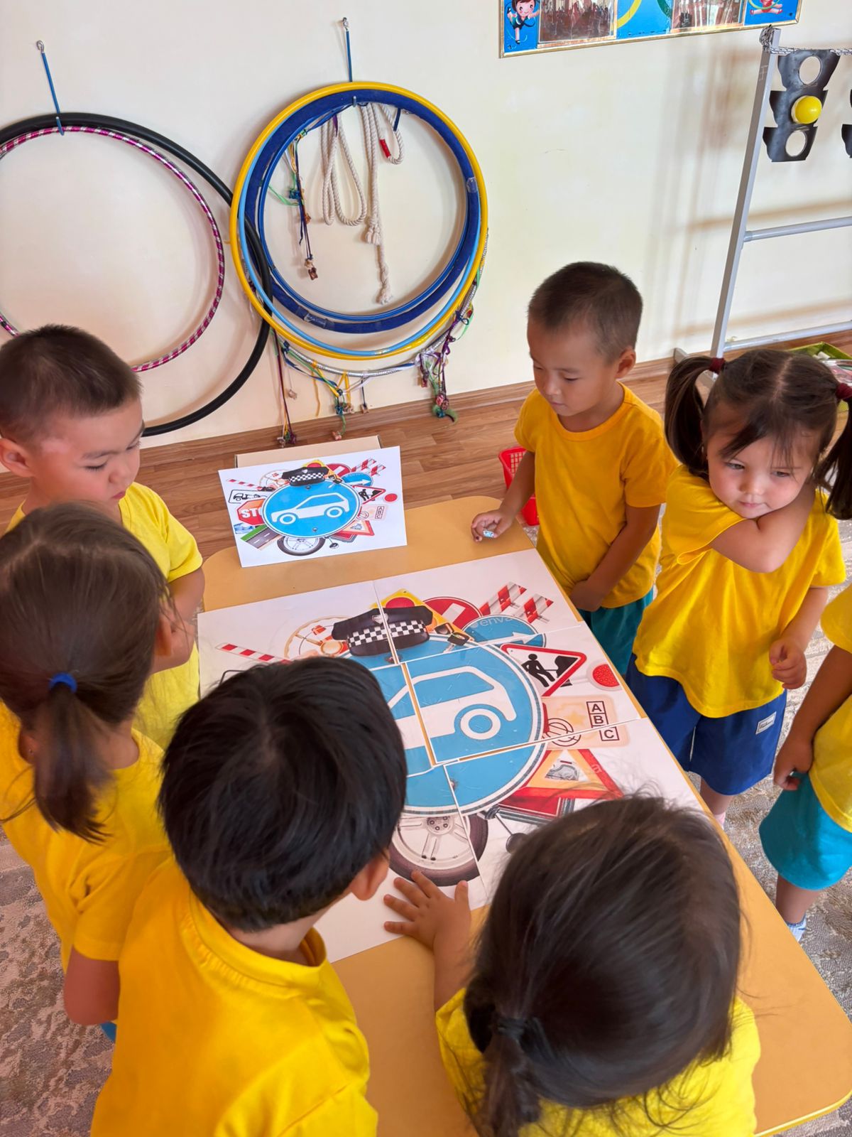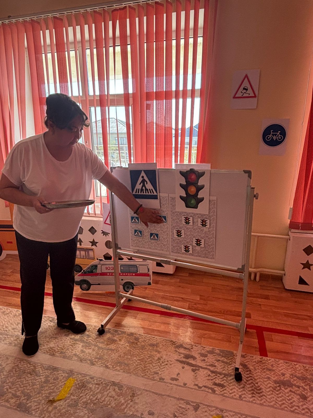 Міндеті: Балаларды жол қозғалысы ережелерін сақтауға және орындауға әрі қарай үйрету. Таныс жол белгілерін, бағдаршам сигналдарын дұрыс атау дағдыларын бекіту. Байқағыштық пен жылдамжықты жамыту. Зейін, бір-біріне көмектесуге деген ықылас қалыптастыру. Көшедегі саналы мінез-құлықты, жол қауіпсіздік ережені күнделікті өмірде қолдану дағдысын қалыптастыру. Ересек “Жұлдыз” тобы Тәрбиеші: Бекешова Б.Н.